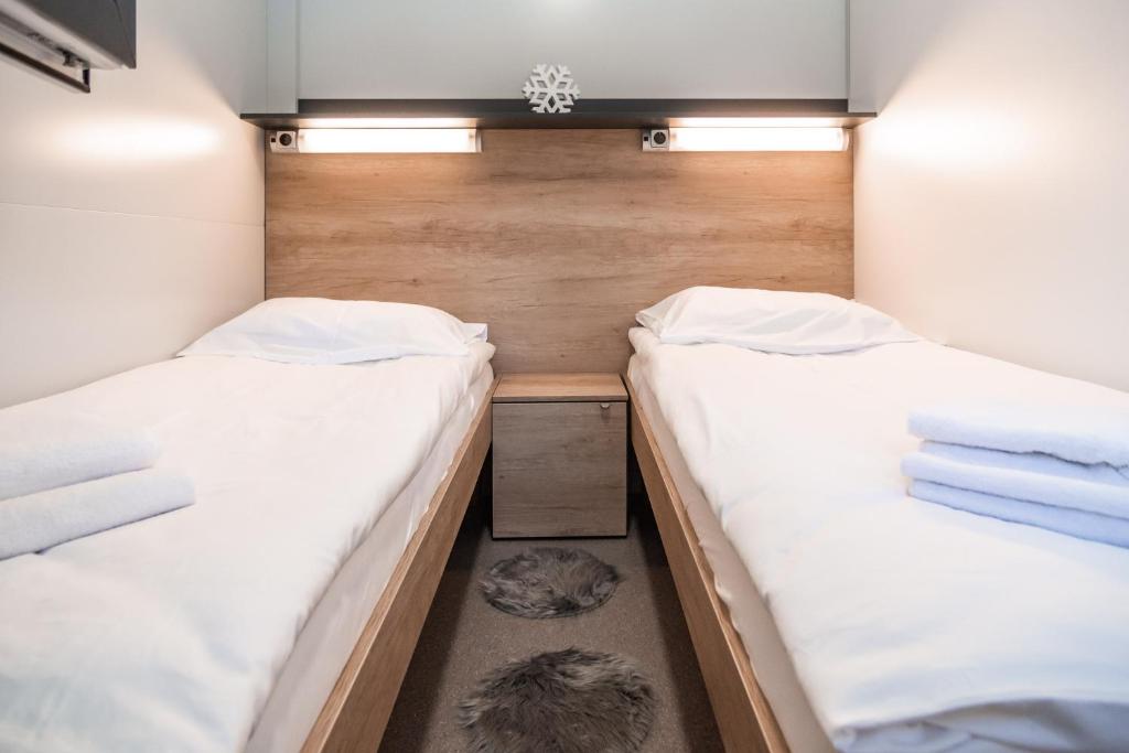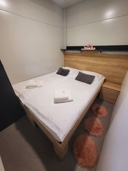 Spalnici se nahajata na levi in desni strani počitniške hiške. V obeh spalnicah sta francoski postelji in omari. Po predhodnem dogovoru je mogoče urediti dve enojni postelji.